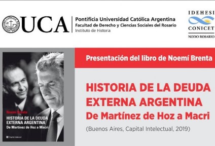 El 15 de octubre, a las 17.30, la Dra. Noemí Brenta presentó su último libro "Historia de la deuda externa argentina. De Martínez de Hoz a Macri" (Buenos Aires, Capital Intelectual, 2019), en la Facultad de Derecho y Cs. Sociales del Rosario (UCA Campus del Rosario).