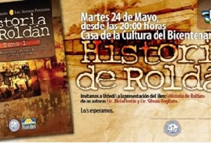 El Instituto de Historia tiene el agrado de invitarlos a la presentación del libro "Historia de Roldán. Tomo 1" de las licenciadas Alicia Florián y Silvana Fogliato, el martes 24 de mayo, a las 19 hs, en la Casa de la Cultura de Roldán.